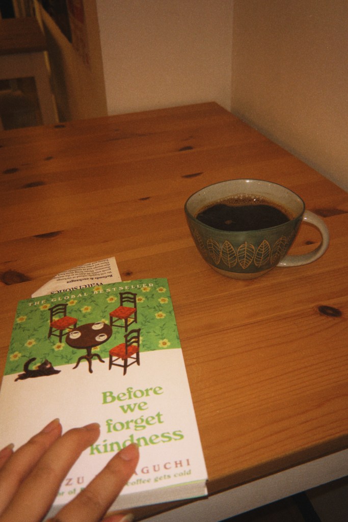 I was and still am a big fan of the popular novel Before the Coffee Gets Cold by Toshikazu Kawaguchi. My mum first placed the book in my sceptical hands three years ago with promises that it’d certainly make me cry. And it surely didn’t disappoint. It came as a recent surprise to find that it is the first of a pentalogy, and that I just so happened to land my hands on Kawaguchi’s fifth and most recent book of the series, Before We Forget Kindness. For me, the lingering resonance of a good book often outlasts the details of its plot, and I openly admit my judgment is coloured by a story’s ability to reduce me to tears. When I first saw the newest addition while browsing a bookstore, I could barely remember the individual characters of Before the Coffee Gets Cold and their stories, but memories of me breaking down bawling after reading it came flooding back. Despite already busting this month’s budget, I knew I just had to get hold of this one as well.